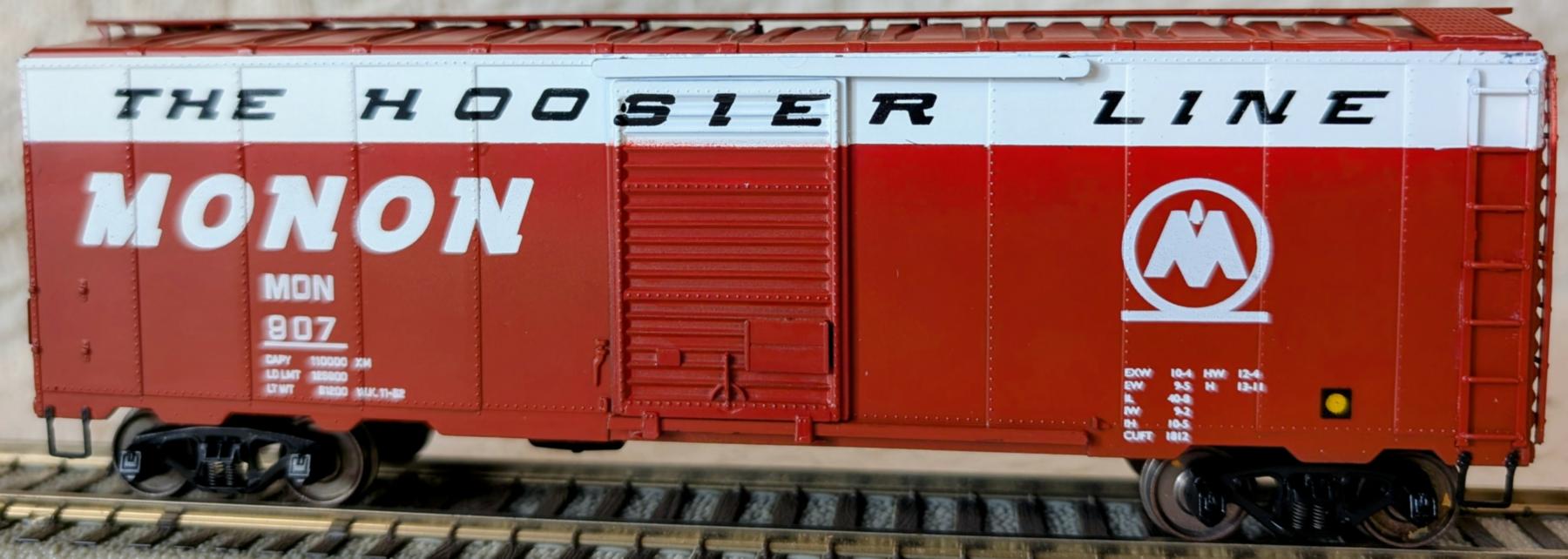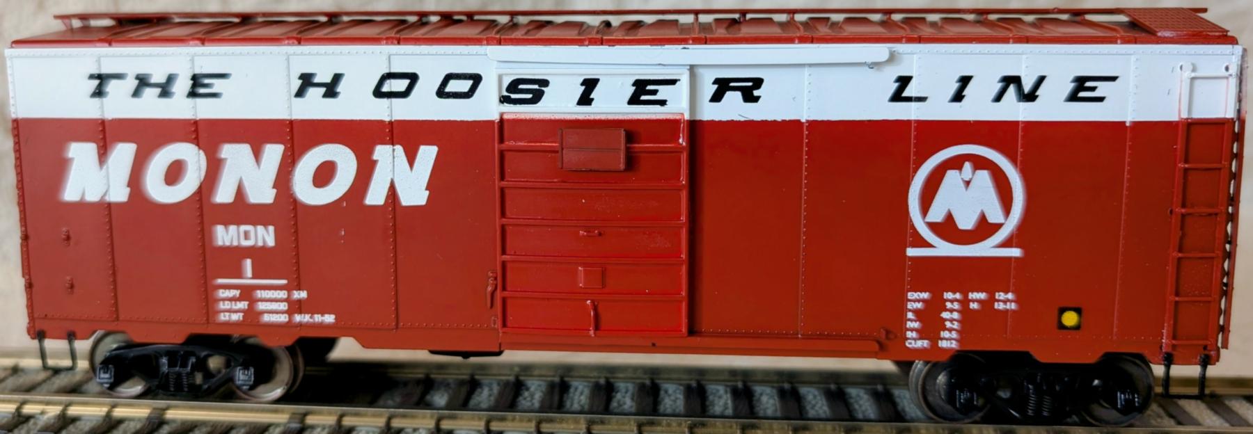 The 2025 issue of the NASG's Annual Member Car Program is the 40-foot box car lettered for the Monon Railroad (originally the "Chicago, Indianapolis, and Louisville Railway", reporting mark CIL). The Monon lasted from 1897 to 1971 when it was merged into the Louisville & Nashville Railroad. Today, the former Monon track is owned by CSX. For 2025 we feature the legendary Monon box car #1. John W. Barriger III, when he ran the Monon, remembered from his early years as a yard clerk that it was easy to write down the wrong road number for cars with 6-digit road numbers. So, when the Monon ordered 500 40-foot box cars from Pullman-Standard in 1947, he simply had them start with #1. Box car #1 was built in July of that year and used the C.I.L. reporting mark (reference). Road number 1 had 7-panel Superior doors. The second box car is road number 907, which was produced in the early 1950s and has Commonwealth doors.