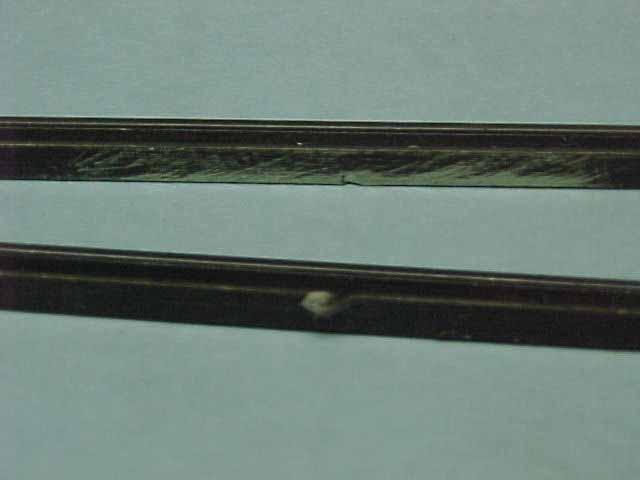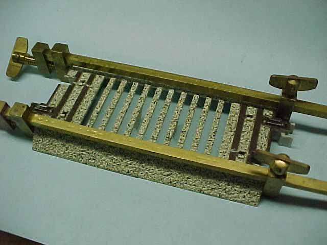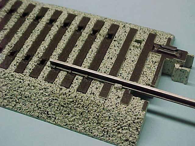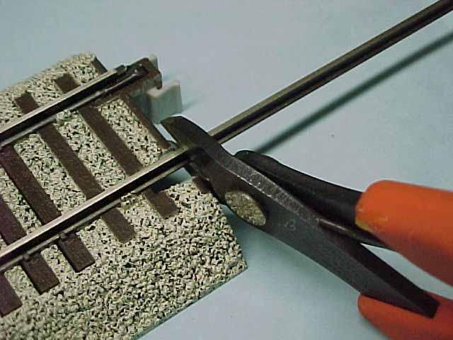 You may need to make a special length of track. This is one method of fabricating a shorter track section by removing ties and making a splice in the middle of the roadbed. Rails can be removed by grasping the rail web at the non-rail joiner end with the needle nosed pliers and pulling out in one motion while securely holding the roadbed. Repeat with the opposite rail. Once the rail is removed, the tie bed can be removed from the roadbed. File or grind off the notches located on the bottom of both rails. This will allow easier installation of the rail.