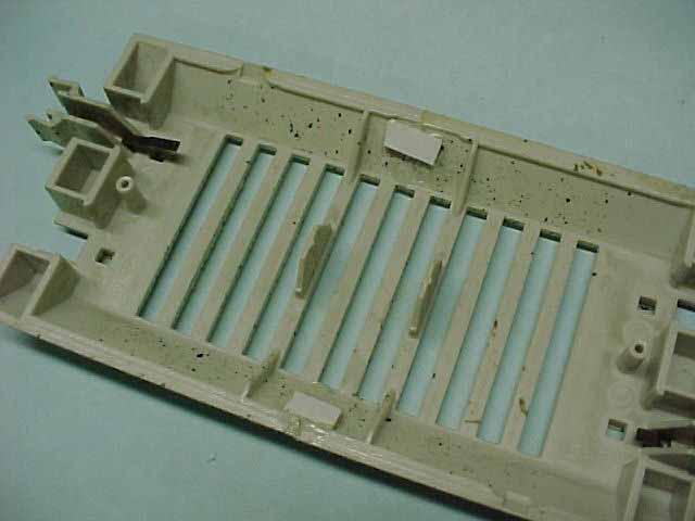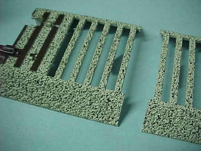 Determine the optimum place to make first cut keeping in mind the spacing of the center triangular roadbed supports. Remember to keep the rectangular openings for the ties need to be either the same width or slightly larger to allow the ties at the splice to be seated properly.
