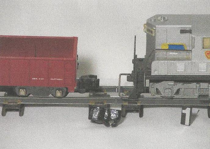 Allows for the connection between an A.C. Gilbert claw/knuckle coupler and an A.C. Gilbert bar-style locomotive coupler.