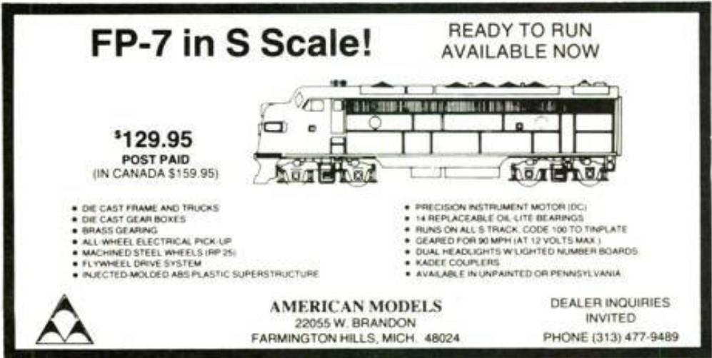 Available in A or A-B configurations. The B-unit could either be powered or contain a sound module. American Models sells their FP7 Window Set for the modeler to install on those models that didn't come with window glazing.