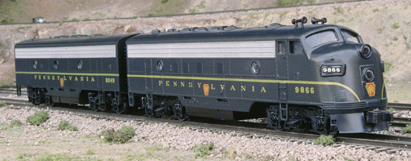 Available in A. A-B. or A-B-A configurations. The B-unit could either be powered or contain a sound module. The dark green paint scheme was used on passenger trains. American Models sells their FP7 Window Set for the modeler to install on those models that didn't come with window glazing.