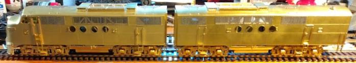 This is a matched pair of an A- and a B-unit, both powered. These are the dynamic brake versions. They are connected with a drawbar, but that can be replaced with couplers. These engines were used by the ACL, CRI&P, GN, LV, MP, SR, SAL, and for EMD Demonstration units.