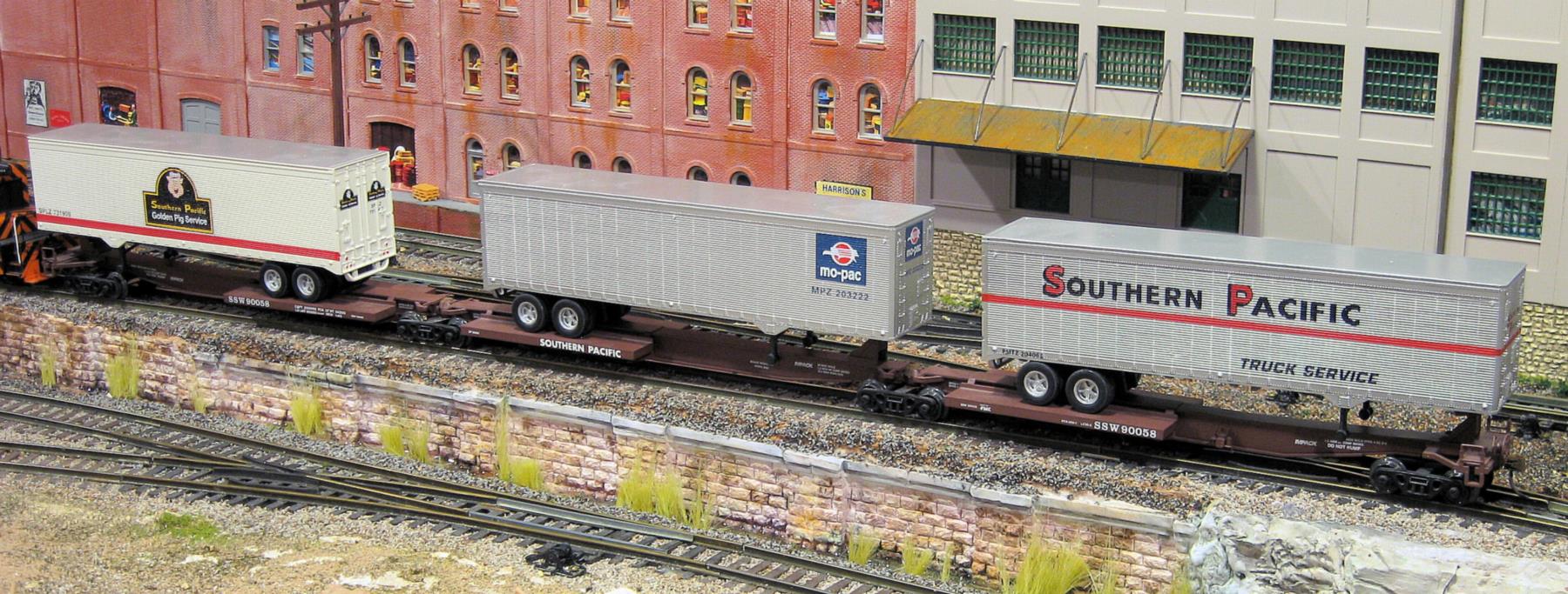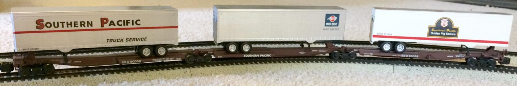 Sold only as a three-unit set. The trailers are available separately. Note that the cars only have one road number, because the prototype was permanently coupled, and so it was considered as one freight car.