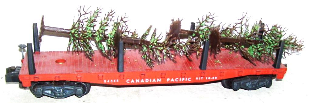 This car was produced in 1959 and 1960 in three variations. The first variation, as shown in the photo, has fiber-type trees and a two-piece brake wheel. The second variation has rubber-type trees and a one-piece plastic brake wheel. The third variation is the car without trees.
