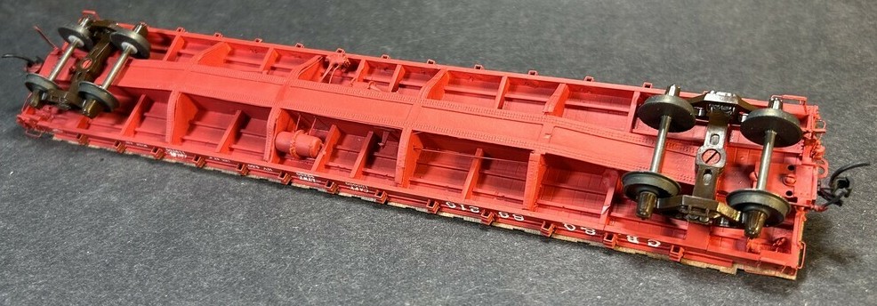 The back story on these specific models, and it unclear how many more exist, was that Bob McCarthy acquired the patterns from Chad Boas for this car. Bob Hogan was helping Bob McCarthy at the time and wound up with two of these kits in his possession. The kit consisted of just the body casting and the wooden deck produced by Lake Junction Models; everything else the modeler had to acquire from then-Grandt Lines (part numbers were indicated in the one-page instruction sheet that accompanied the kit). The car never made it to full production due to Bob's passing. Jim King, of Smoky Mountain Model Works, acquired the patterns from Bob McCarthy somehow, and refined it and eventually released the kit under his own company name.