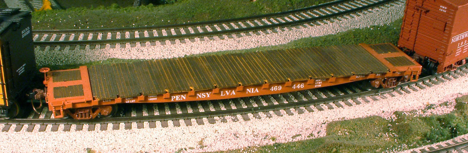 This model has a PRR freight-car-red body color and came with a road grader construction load.