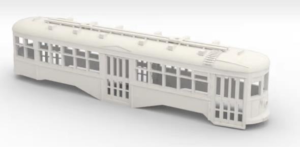 Body shell only. Roofwalk and roof ladders are printed in place. The shell was designed to take a 1/8" thick frame. These cars were operated in Brooklyn and Queens, New York City.
