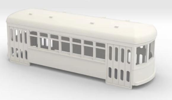 Short, center-entrance trolley. Body shell only.