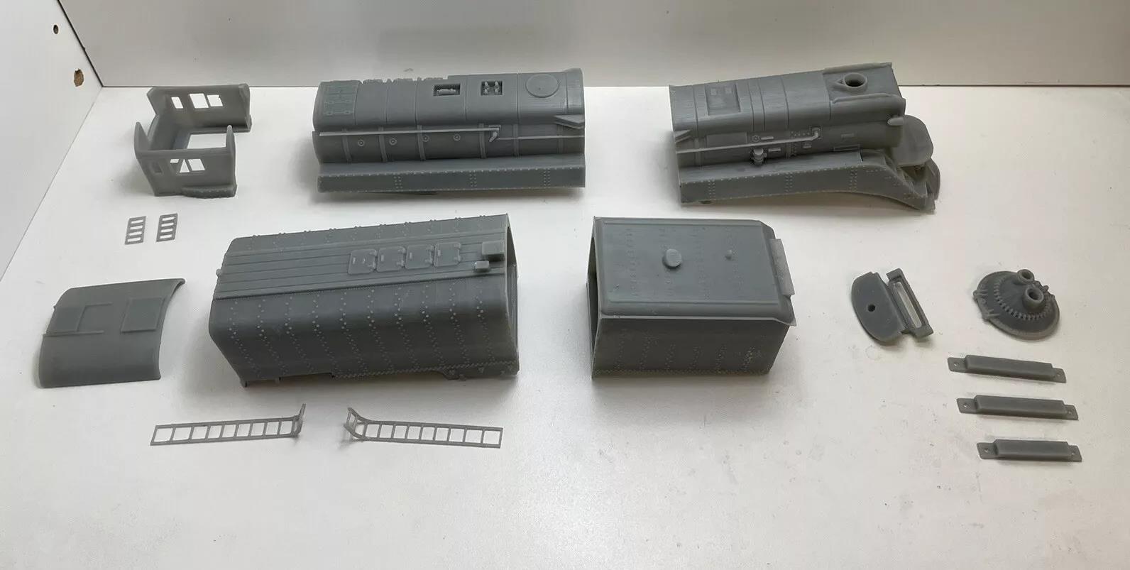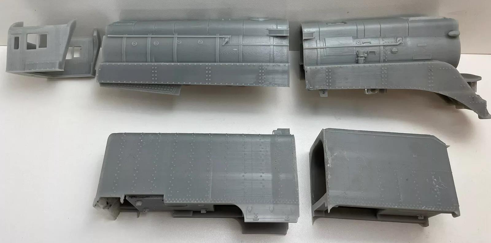 The company provides 3D-printed parts that the modeler can apply to an A.C. Gilbert 4-8-4 Northern (e.g. #332) to convert the model into a Southern Pacific streamlined GS-4. Those engines can be painted with their Daylight paint scheme or war-time black.
