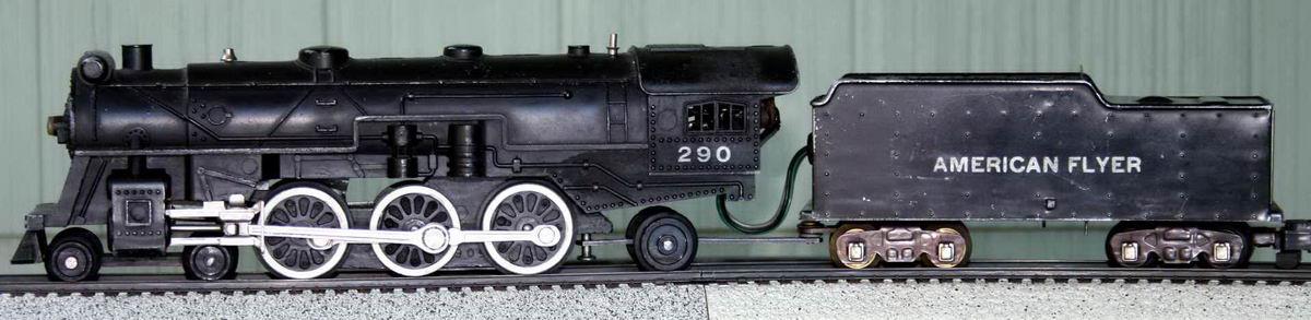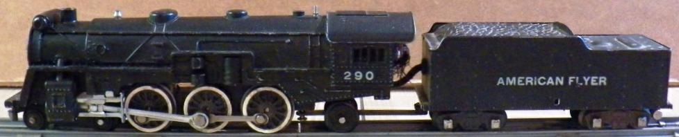 The plain or non-streamlined version. It represents the 290-series of models. These have a cast-metal body. One variation has link-and-pin style couplers, and the other variation has knuckle style couplers. All of the #29x-series locomotives share the large round feedwater heater on the top front of the boiler.