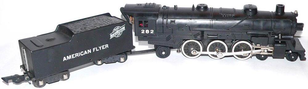 This engine was produced from 1954 through 1956 in only one variation. The tender has both the American Flyer Lines and the Reading Lines logos.