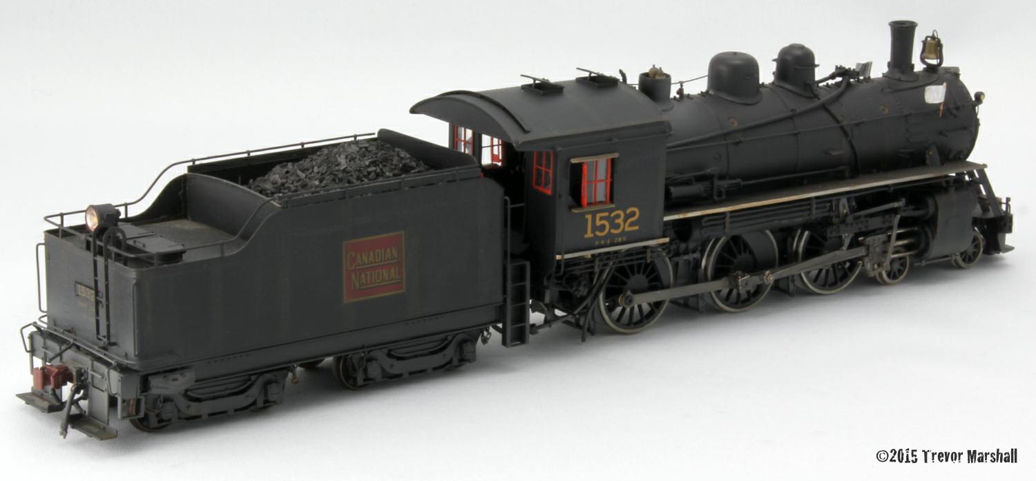 Simon Parent designed the kit for this engine, and Fred Rouse, of S Scale Locomotive & Supply, provided the parts. Simon then built and super-detailed the kit into the model shown here for Trevor. The kit is based on the CNR #86 prototype engine, but it has a slightly different tender and headlight.