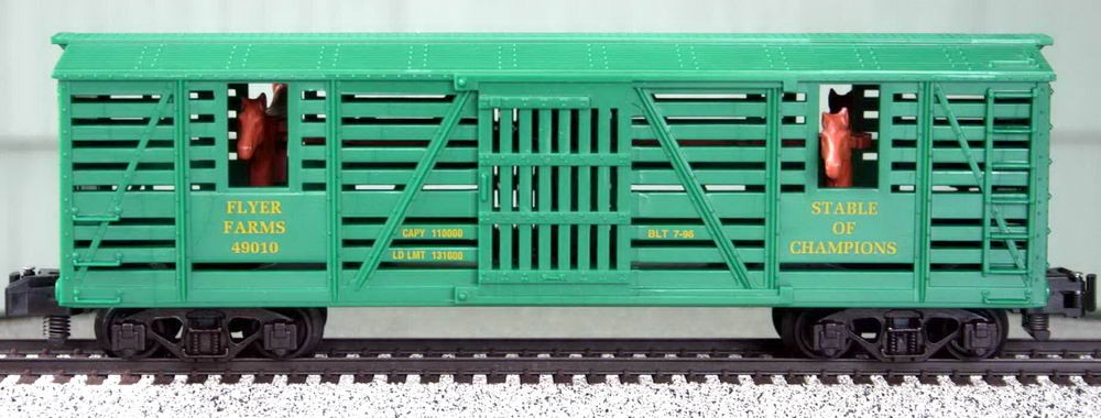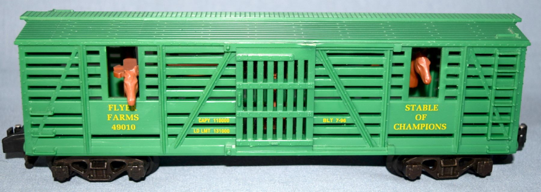 What is interesting about this "Flyer Farms Stable Of Champions Horse Car" is that one side has the decals printed on it, but the other side was completely missed (see the second photo). Oops!