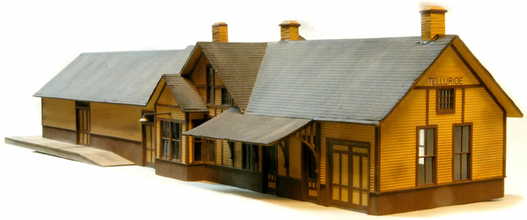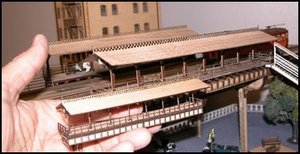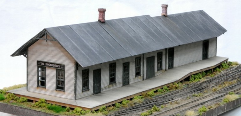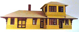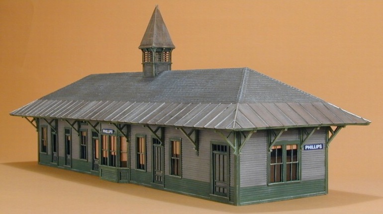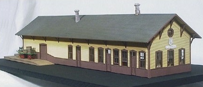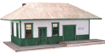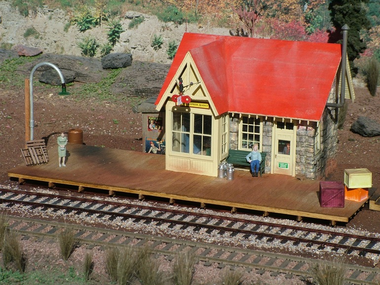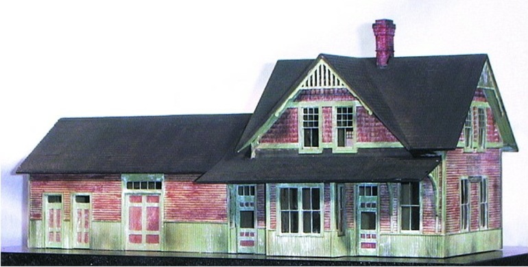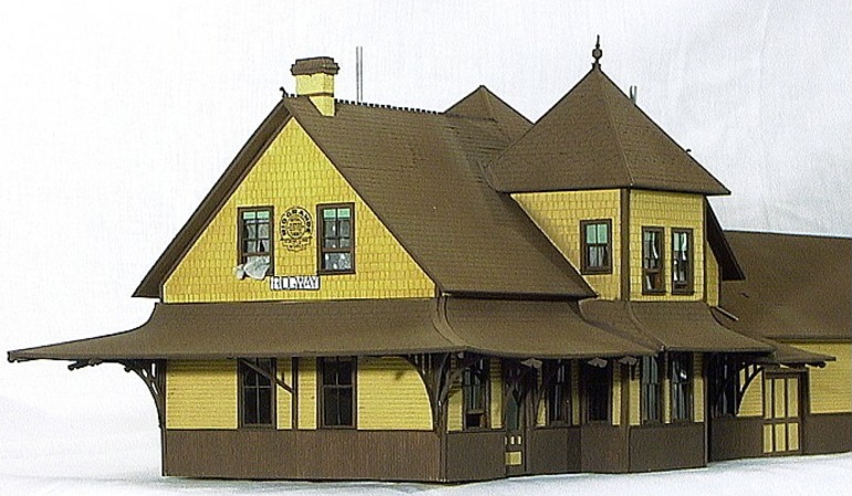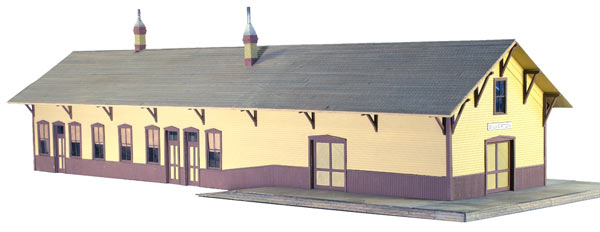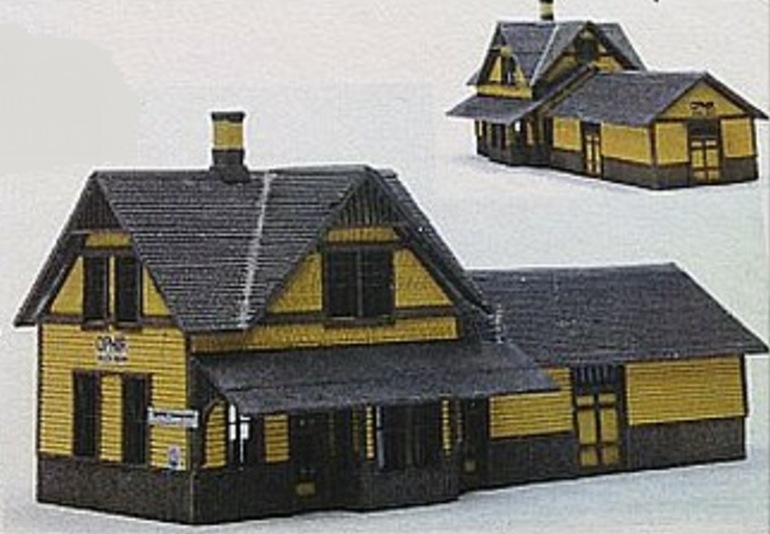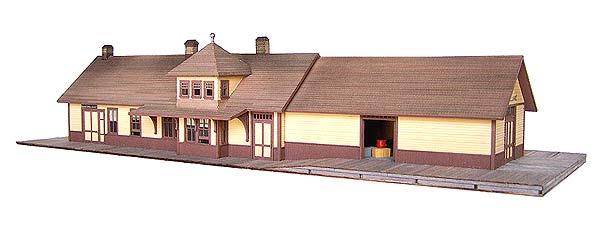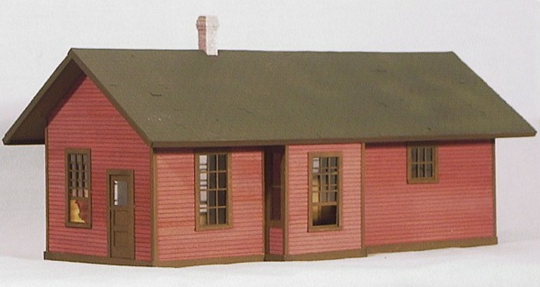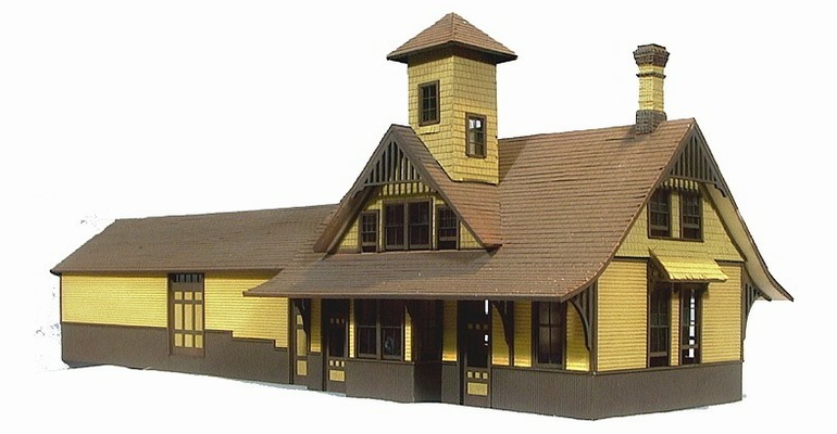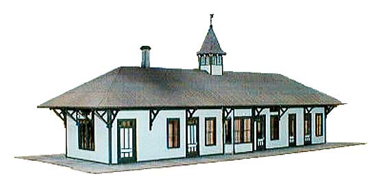 Modeled after the E.B.T. station found in Rockhill Furnace, PA. There were three versions available: 1907: as built, without platform roof. 1935: with platform roof. 1955: post office moved to south end. This model won the "S Scale Structure of the Year" in 2000, as voted on by the readers of Model Railroader magazine.