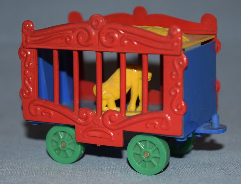 All circus cages and trucks were manufactured by Allied prior to Gilbert using them. In fact, Allied manufactured other circus-related items such as an Amusement Ride truck. All Allied cages have an Allied mold mark on the bottom of the cage, and all trucks have one on the inside of the truck roof.