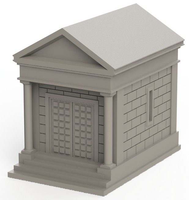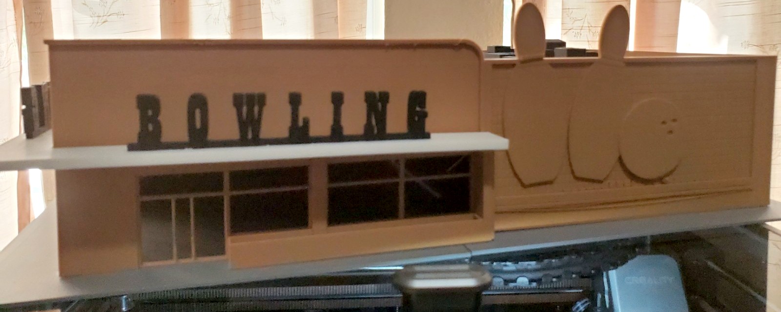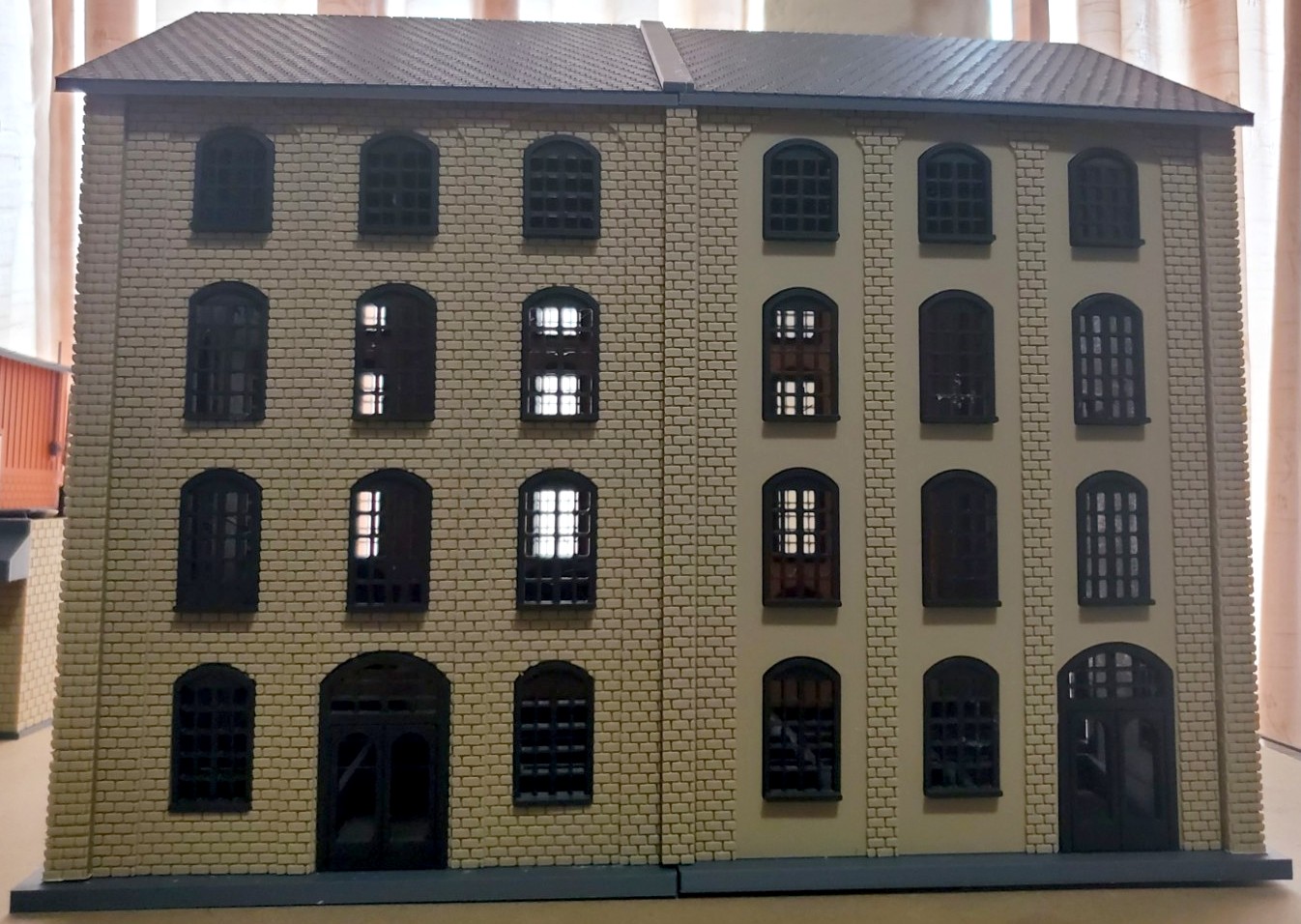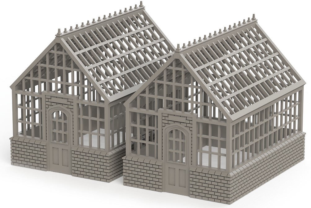 This is a 3D-printed, unpainted model that requires some assembly to complete. This is done for two reasons. One, you can paint the individual parts before assembly. Two, you can detail the interior and install "glass". The main building is one whole unit, as is the roof. The window frames are separate parts.