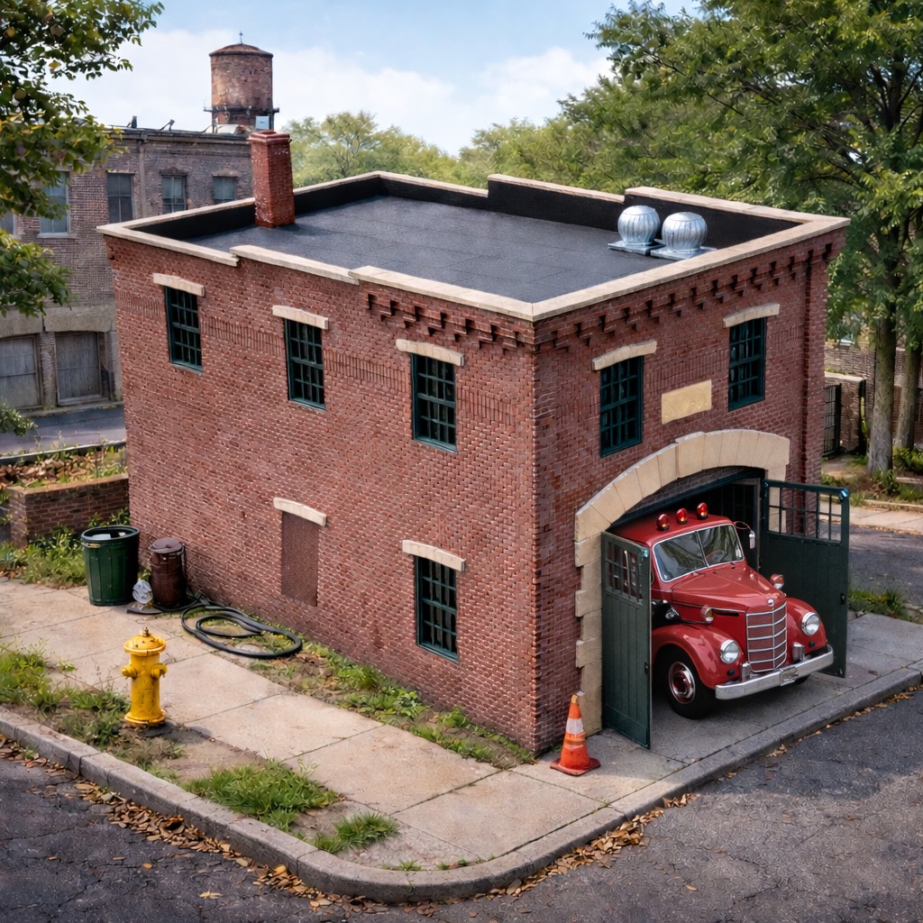 Swiss Dog Studios has recently released their Fire Station laser-cut wood kit in HO-scale. They are now taking pre-orders for other scales, including for S (see their March 23, 2025 pre-announcement). The structure is modeled after the Philadelphia Engine 29, Medic 15, and Rescue 1 building. For an additional fee, you can have them build and paint your model. Kits are produced when the order is placed.