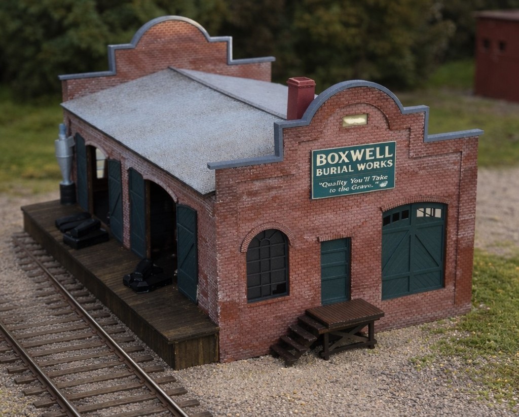 JL Innovative Design produces a large number of barrels, street mailboxes, milk cans, and soda machines details. They have now expanded to offer laser-cut wooden structure kits in S-scale.