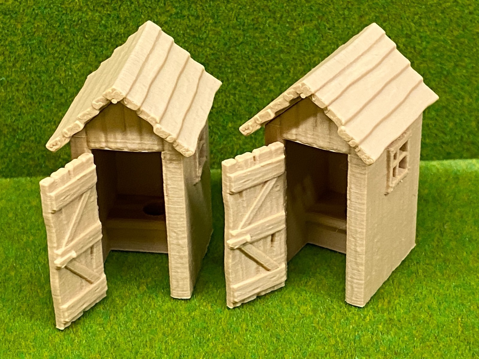 New to this web site, Homestead Scale, based in Dorset, Ohio, offers a pair of backwoods cabins. These are 3D-printed and unpainted. No assembly required.