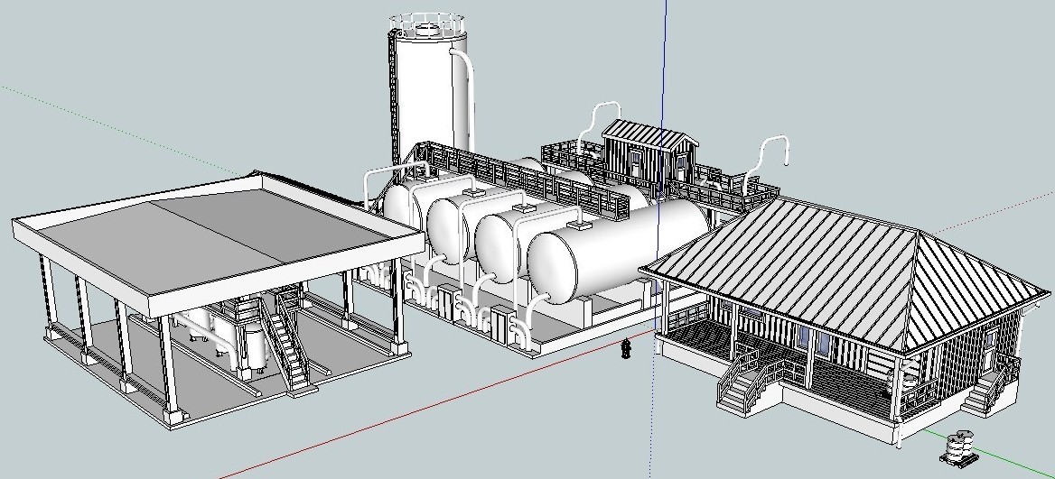 B.T.S. releases this oil storage facility. The kit includes the tank, the timber frame structure, and the pump house.