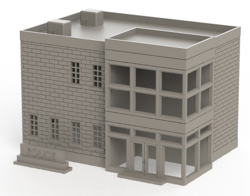 This is a kit for a 3D-printed police station, modeled after Police Station #4, Bronx, New York.