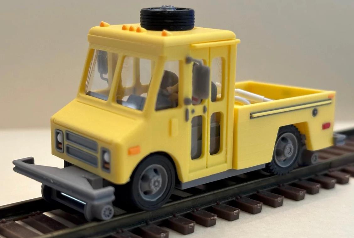 CatzPaws Innovations has two versions of this bare chassis available. One version has just the road-going wheels, and the other version has both those and the rail-going wheels (for road-and-track maintenance-of-way vehicles). Furthermore, you have the option of ordering the fully motorized version (see the first photo) which includes all of the necessary electronics, or the non-motorized version (the second photo) for static models or for with use of the company's InvisaTrax system. The motorized version comes with a 3.7 volts lithium-ion rechargeable battery and a 15rpm motor, which allows for both forward and reverse movements. DCC incorporation is possible by the modeler, and the wheelbase is somewhat flexible. Finally, the modeler can order the STL/3MF files to print the body and parts on their home 3D-printer (be sure to read and follow the license agreement shown on their web site).