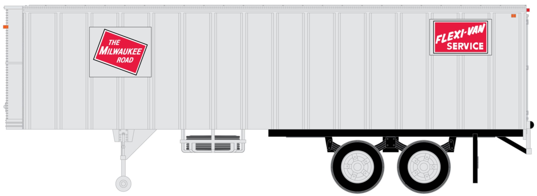 ScaleTrains announces their first S-scale vehicle or load (depending on how you plan to use them). The 35-foot dry-goods trailers can be pre-ordered now, and are scheduled to arrive in June of 2026. These are the stand-alone models for use in industrial scenes, as extra loads on TOFC cars, or attached to a cab (several companies make die-cast cab units). The bodies are made out of plastic, the tires are rubber, the axles are metal, and the models are very detailed. These are the vertical-posts versions of the trailers, based on the 1997 release of the original S-Helper Service trailers, but with completely new road names. They fit in the late-1920s through the 1960s era. Trailers were limited to 35 feet prior to 1958 east of the Mississippi.