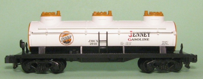 The NASG contracted with Lionel to produce a limited run (500 cars) of this 2010 American Flyer commemorative Jenney Gasoline triple-dome tankcar. The car number is 2910 and the tank colors are white, orange, black, and red on a black frame.