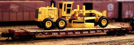 S-Helper Service was commissioned to produce 300 models of their 53-foot PRR flat car, equipped with an Ertl road grader as the load (SHS #00176). The car cost $45, and included both scale and hi-rail wheels and couplers.