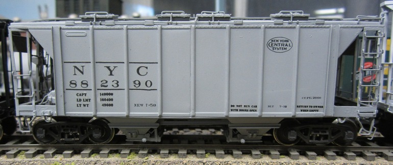 The photo above is of Jim Kindraka's model, painted and lettered for the NYC. This is the later "Phase III" version, which can be identified by the closed-off center section (compare it against the photo below).