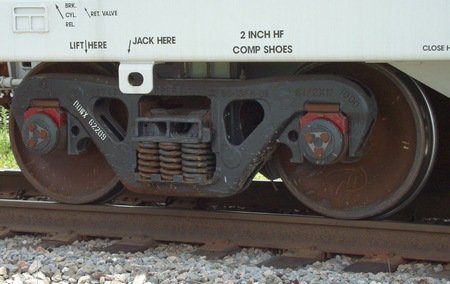 The most popular truck in the transition era was the AAR Type Y truck. This was manufactured under license from Bettendorf, and is often incorrectly called the "Bettendorf" truck (think "Kleenex" for tissues). These are also identified as the Pennsylvania Railroad's 2D-F8 truck.