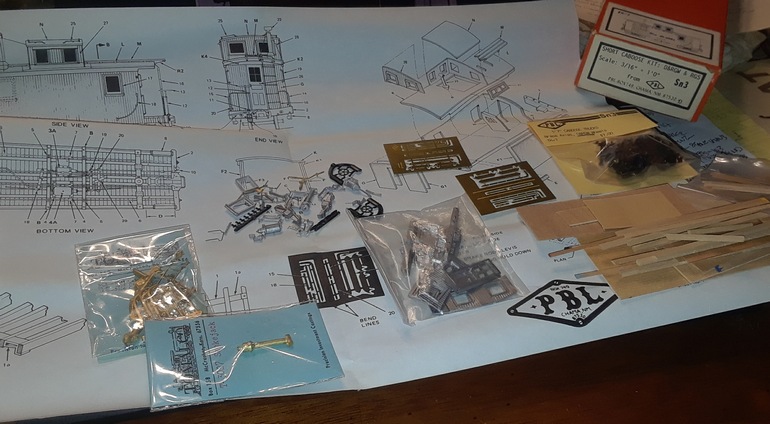 "Short" caboose. This plastic kit features a complete interior. Includes underbody details, trucks, decals, couplers, and sliding cupola windows. The kit is re-run from time to time.