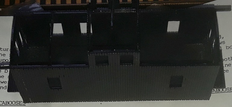 The kit was originally designed by Frank Titman. This generic caboose kit had one side of the sides embossed to represent wood planks, while the other side was smooth. The instructions indicate to use the smooth side if the modeler wanted to represent a steel caboose.