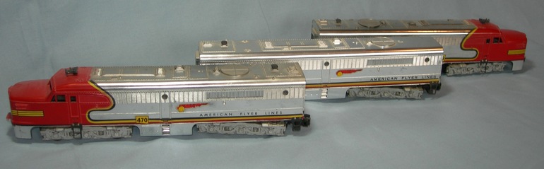 "Silver Flash". A PA-1 and PB-1 set, with the PA-1 having two motors and the PB-1 not being powered. A chrome version was made in 1953.