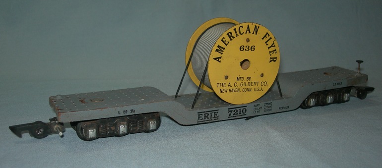 This car was produced from 1947 through 1953. Their bodies were all made out of die-cast metal, except for the one shown in the photo, which was only produced in 1952. It is made out of pressed wood. You can tell from where the paint is chipped off; the chassis is a brownish/tan color confirming that the chassis is pressed wood. This variation is somewhat more rare than most and as such is higher priced in today's market. Note the tie-down cables are black elastic bands that pass through the car and are butt-spliced under the car. The elastic bands are very fragile and due to age they are typically broken or become broken when handled.
