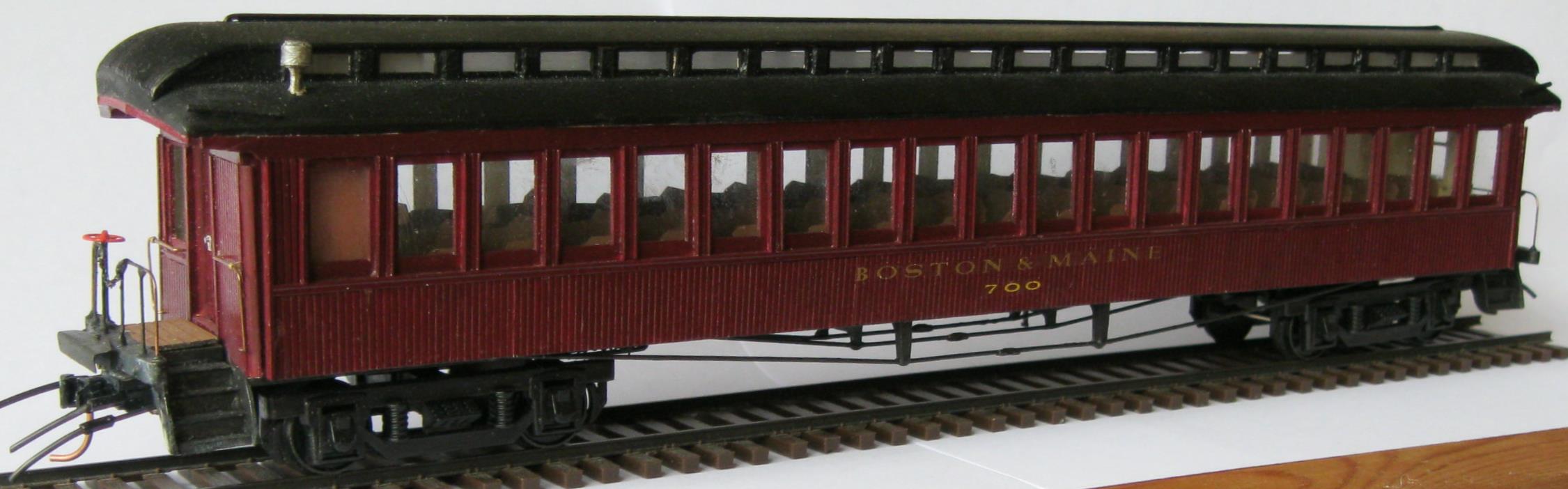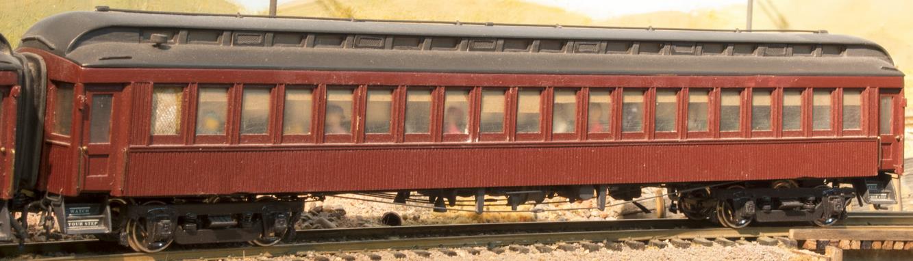 The model could be built with open platforms, vestibule platforms, or fully enclosed ends. There was some confusion as to who actually produced these cars. The cars shown here were made by Kinsman in 1969, which was after owner Bob Blois stopped working for Northeastern Scale Models. Northeastern also produced these cars, but only in HO-scale and they are slightly different from the ones that Kinsman made (Northeastern's cars had a portal window instead of the frosted-glass window; Ambroid sold these HO-scale NE kits).