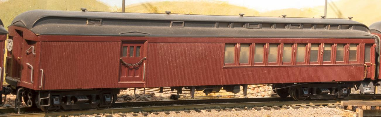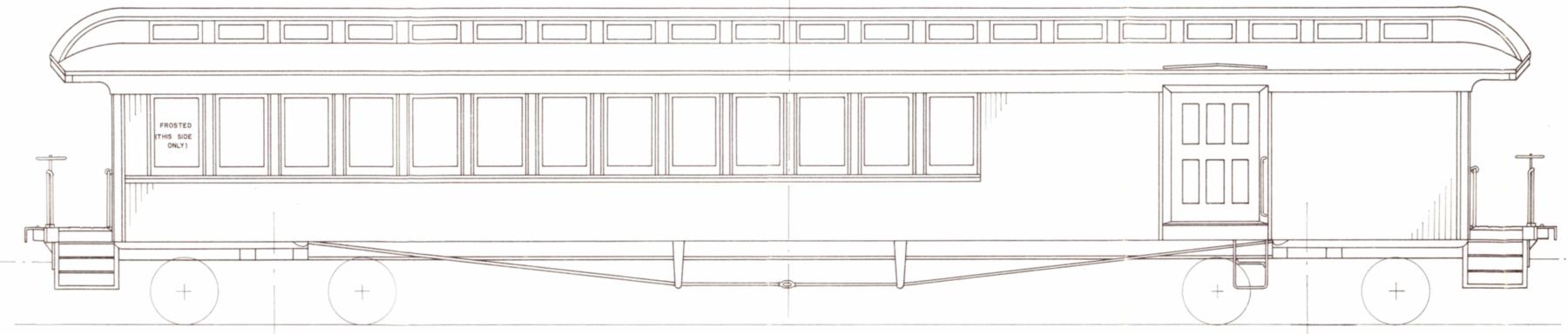 The model could be built with open platforms, vestibule platforms, or fully enclosed ends. There was some confusion as to who actually produced these cars. The cars shown here were made by Kinsman in 1969, which was after owner Bob Blois stopped working for Northeastern Scale Models. Northeastern also produced these cars, but only in HO-scale and they are slightly different from the ones that Kinsman made (Northeastern's cars had two doors in the baggage compartment and a portal window; Ambroid sold these HO-scale NE kits).