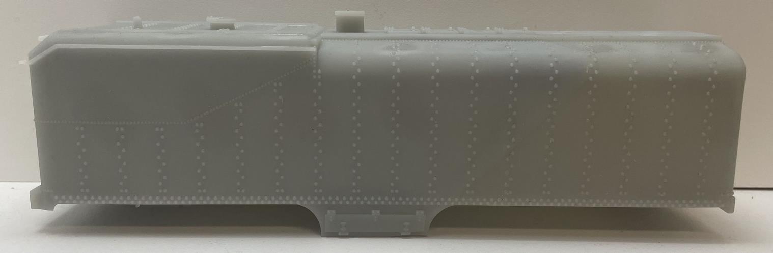 The kit provides the body (two parts) and the access ladders. The modeler has to provide a donor chassis. For this version, one of the American Models 4-8-4 Northern tender chassis should work.