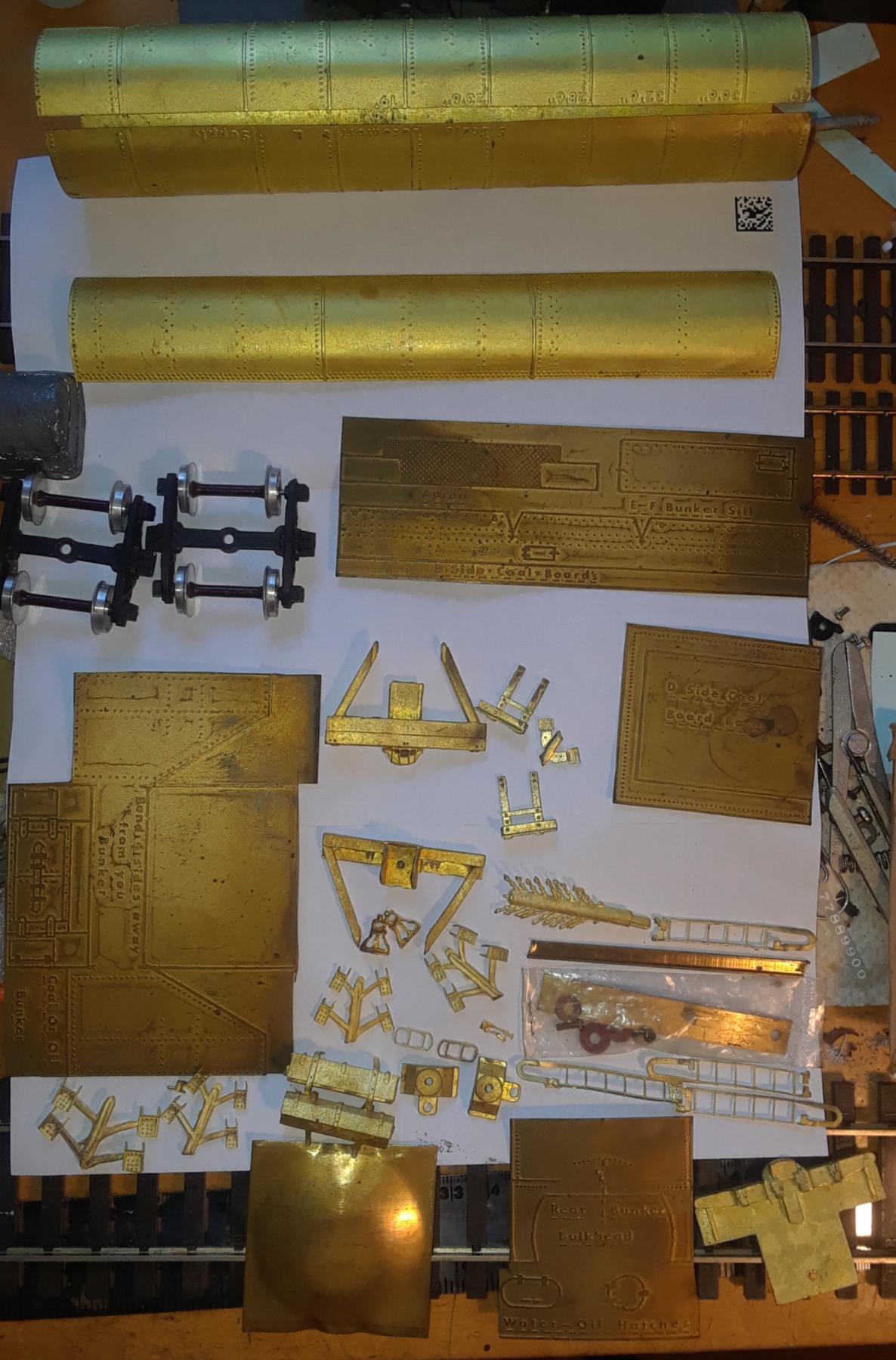 The Vanderbilt tender kit comes Andrews leaf spring trucks, as used on USRA prototypes. Note that quite a bit of the bunker needs to formed from the engraved sheets. The tube is designed to be cut to various lengths to suit particular prototypes.