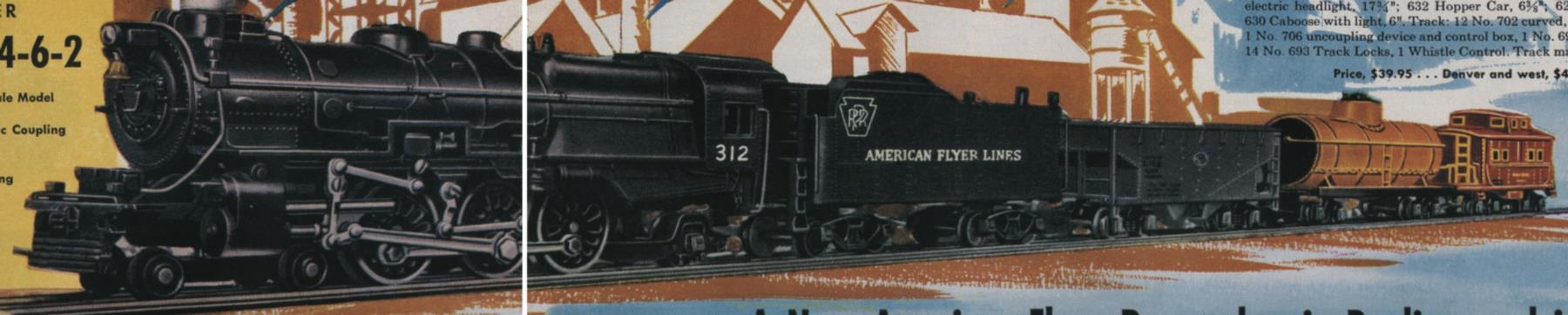 #951G express and mail car, #953G baggage and club car, #952G Pullman coach, #954G lounge and observation car