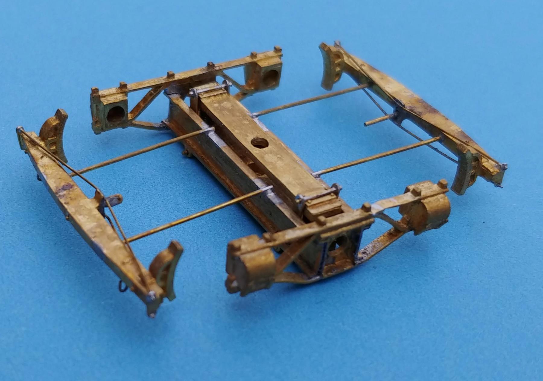 Molded and cast in brass, each truck includes two springs with a working swing-beam mechanism.