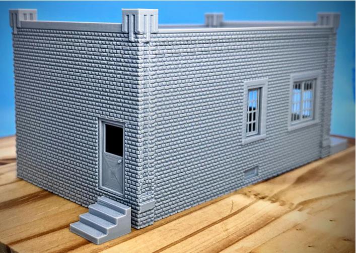 This model is based on the bank in Cherry Valley, Illinois, which was constructed in 1909. It still stands today, except that it is now a restaurant. The former vault of the bank is used as the restaurant's office.