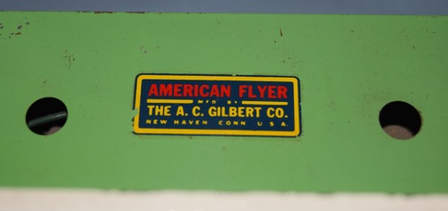 Some A.C. Gilbert accessories were produced in 1946 and later, such as the #577 Billboard, #581 Girder Bridge, and #752 Seaboard Coaler. When you come across such accessories, a quick look at the sticker will give you a hint as to year of manufacture. The ones made in 1946 have the sticker shown on the right. There is no yellow line under the "AMERICAN FLYER" text.