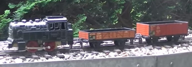 The East German company produced electric trains in 22.5mm scale. It runs on A.F. track just fine, although just barely. Below is a photo of a train set they produced.