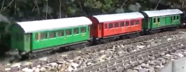 Fred van der Lubbe's outdoor layout is dual-gauged for G-gauge and S-scale. It is a unique solution to wanting to run trains of different gauges in a part of the world where indoor space is very limited. He also has a video showing an electric JEP train set on this layout on YouTube. He shared a few still-shots of the train.