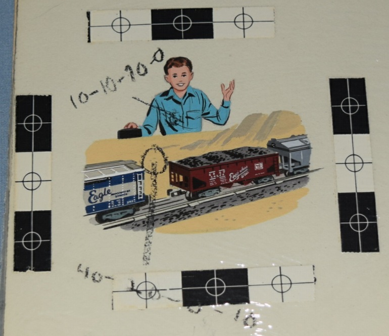 including the catalog artwork and press proofs, went to the Lionel Corporation for archival purposes. This particular grouping of