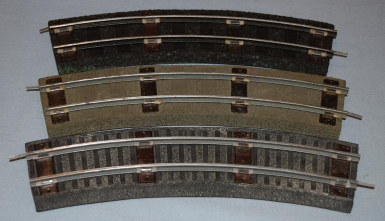 Part #727 offered the same rubber system for curved sections of track, also in three variations.