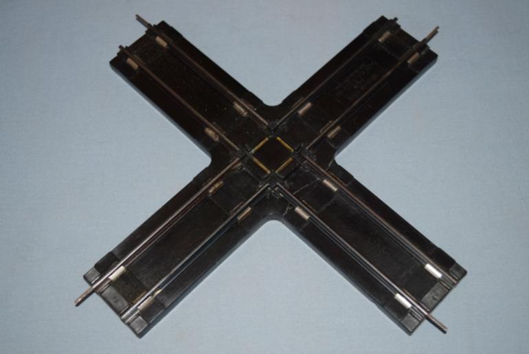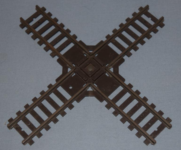 A.C. Gilbert also manufactured crossings. This one, part #725, offered a 90-degree crossing.