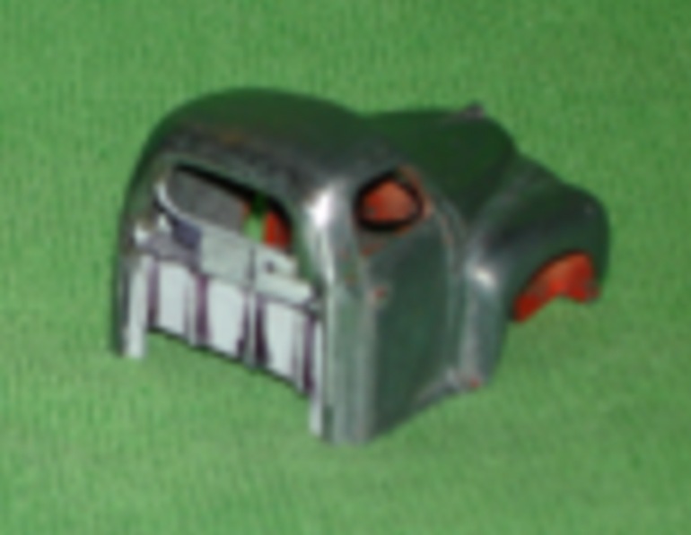 After cutting off the cab from the Dinky tank body, Randy scratchbuilt the back of the cab, simulating the folds in the rear panel (sorry for the low-resolution, but these photos were taken a number of years ago with an older digital camera). Additionally, he removed the paint and some flash and mold lines from the cab.
